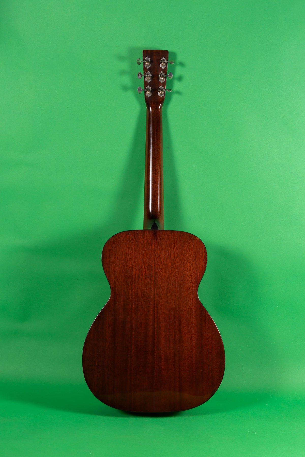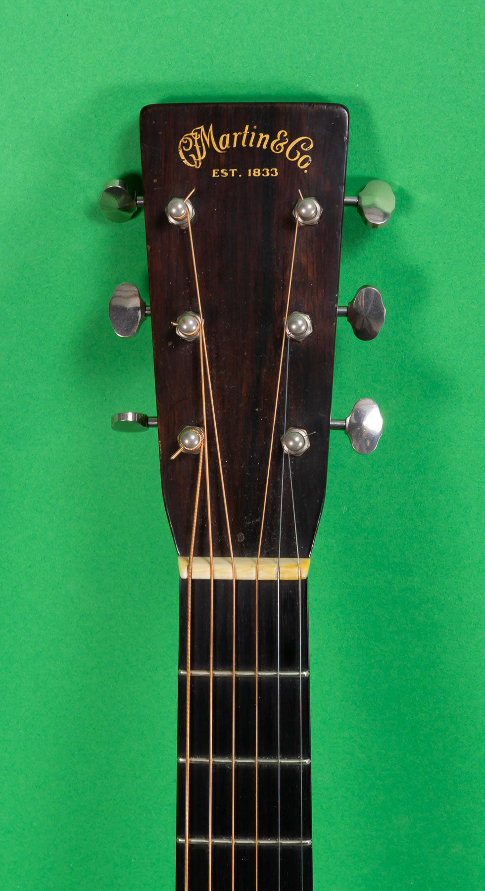 This guitar has had restoration work done by notable Bay Area luthier, John Mello. I think the work was done about 20 years ago. Here is what I know about the guitar at this moment, more information will follow soon. I do not see any cracks or crack repairs on this guitar. The ebony bridge and fingerboard have been replaced. The finish is either all oversprayed or refinished. The original tuners are included, new tuners are on the guitar. The tuner holes are not enlarged. The guitar has a newer modern hard case. This is a 1930s 14 fret Martin with a wide nut. It could use some new strings.