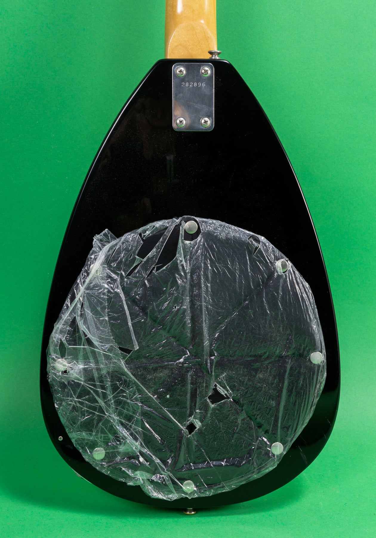 This guitar has perhaps never been used. It still has the factory clear plastic protecting the nylon back pad. All the tags and extras were still in the case pocket when it arrived here and it is as if they had never been removed. The polish cloth looks like it has never been unfolded. The case keys are attached to the case handle, perhaps as it was shipped but I do not know. This is not mint condition because the pick guard has a slight warping near the front. This is 100 percent original and also a rare and exciting color for this model.