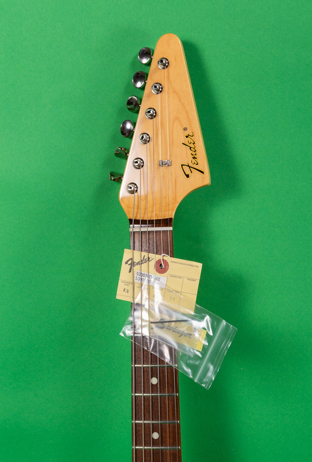 I bought this about six years ago and it is still unused. This was offered by Fender Japan in the Japanese marketplace. It was made there. This is based on the original Swinger model with some small improvements. The scale length of this one is 24 inches. The guitar has two pickups. It is a much better guitar than the original swinger. This is a nice sounding light weight guitar.